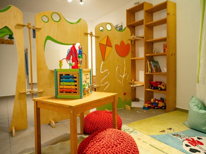 Viel Platz bietet unser geräumiger, teilweise überdachter Hofraum für Kinderfahrzeuge, großer Spielplatz mit Relaxliege, urgemütlicher Aufenthaltsraum, kunterbunte Spielecke für die Kleinen, täglich neue Bauernhoferlebnisse,