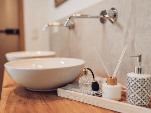 Die Schlafzimmern sind ausgestattet mit exklusiven Doppelbetten. Diese und viele weitere Möbel wurden handgefertigt und bestehen aus dem Holz einer über 100 Jahre alten Heuscheune aus unserem Ort.