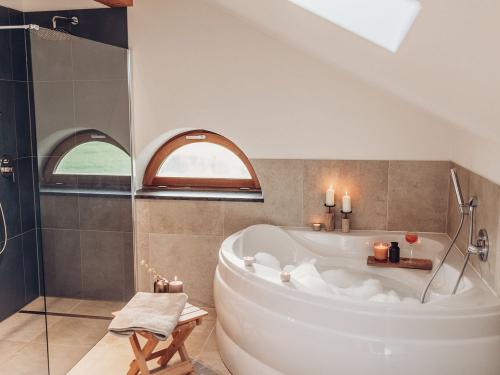 Unsere Ferienwohnung Almwiesen bietet mit ca 110 qm ausreichend Platz für 4 Personen. Ausgestattet ist die Wohnung mit einer großen und modernen Küche, Wohn-und Essbereich, zwei großzügigen separaten Schlafzimmern, Bad mit Eckbadewanne, Regendusche und Waschmaschine, sowie einem extra Infrarot-Wellnessraum.