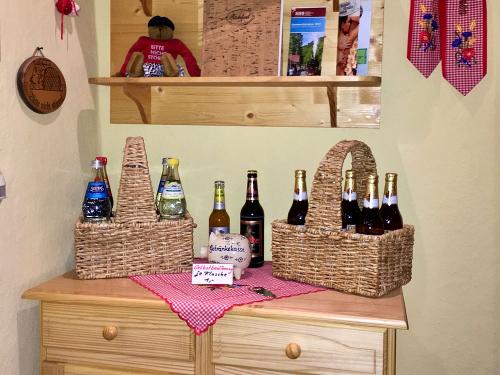 Die Ferienwohnung Schlossberg befindet sich in der 1. Etage im Fachwerkhäuschen. Die Wohnung verfügt über einen Wohnraum mit Flat-TV, WLAN, eine offene Küche, zwei Schlafzimmer und ein Bad mit Dusche und WC. Die Küche ist mit einem Geschirrspüler, einer Mikrowelle und einem Backofen ausgestattet. Eines der Schlafzimmer hat ein Doppelbett und eines ein Einzelbett sowie eine Schlafcouch. Eine Aufbettung für Kinder ist auf Wunsch möglich.