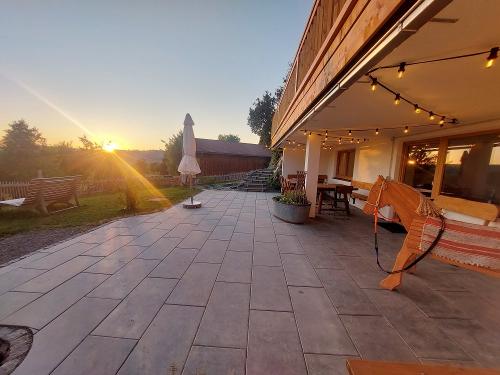 Eine gemütliche Gemeinschaftsterrasse mit traumhaftem Blick und Liegestühle laden Euch zum Entspannen und Beisammensitzen ein. Ihr wollt Euren Urlaub aktiv verbringen? Kein Problem, direkt am Haus starten Wanderwege. Den Grüntensee mit herrlichen Badestellen erreicht Ihr nach nicht einmal 10 Minuten Autofahrt. Bei uns finden Sie alles, was Sie brauchen für einen naturverbundenen Urlaub mit Entschleunigungs- und Auszeitgarantie.