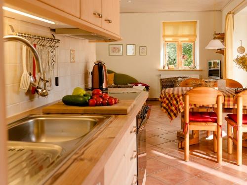 Großzügige, komfortable Ferienwohnung , Südwestlage, separater Eingang, Sonnenterrasse am Bauerngarten; barrierefrei, behaglicher Wohnraum, Einbauküche mit Geschirrspüler und TK-Fach. Zwei getrennte Schlafzimmer mit 4 Komfortbetten, geräumiges Duschbad, TV, Telefon, DVD, W-Lan, Waschmaschine, grosse überdachte Veranda, Liegewiese, Gartenmöbel, Grill und Strandkorb.