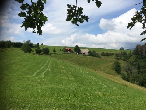 Wohnung Feldberg befindet sich in der zweiten Etage und besticht durch die herrliche Aussicht sowie ihre gemütliche Atmosphäre. Auch hier gibt es zwei separate Schlafzimmer, eines mit Etagenbett. Es besteht die Möglichkeit ein Kinderbett dazu zu stellen. Die Küche ist komplett ausgestattet, ein Backofen ist vorhanden. Wohnung Feldberg hat einen großen Südbalkon, auf dem Sie das Bergpanorama genießen und Kühe von oben betrachten können. Bei Bedarf kann zusätzlich eine kleine Wohneinheit dazu gemietet werden. Diese befindet sich im Dachspitz und besteht aus einem großen Wohnraum mit zwei Betten, einer Küche mit Essgelegenheit und TV.