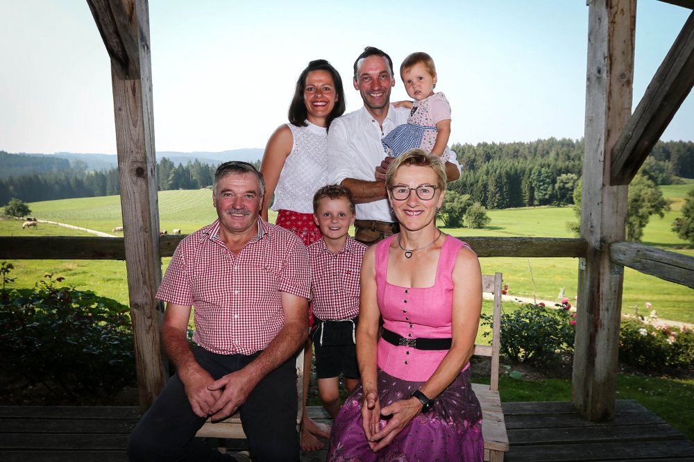 Wir, der Bauer Konrad und Elisabeth mit unseren Kindern Benedikt und Johanna und "Oma und Opa" - Gertraud und Konrad König begrüßen Euch ganz herzlich auf unserem vollbewirtschafteten Familienbauernhof im Herzen des Bayerischen Waldes.