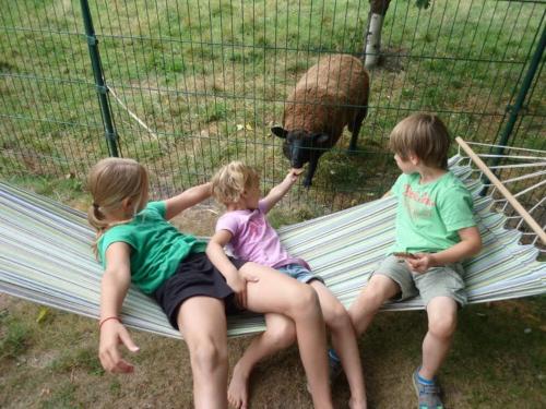 Die Schafe kommen direkt an den Terrassenzaun. Der "Schafstall" ist unsere beliebteste Wohneinheit auf dem Ferienhof-Albert. ;-))