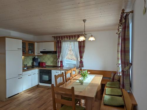 Die 4-Sterne Ferienwohnung bietet Ihnen eine komplett ausgestattete Wohnküche mit Spülmaschine, Mikrowelle, Kaffeemaschine, Wasserkocher, Toaster und gemütlicher Eckbank, sowie im Wohnzimmer eine große Couch, CD-Player, SAT-TV, DVD- Player, einen Fernsehsessel und einen Kaminofen (inkl. Holz)