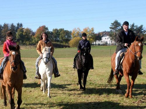 * Reitunterricht auf dem Reitplatz oder einen Ausritt ins Gelände