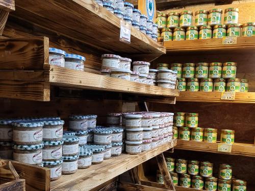 Unbedingt besuchen sollten Sie unseren liebevoll gestalteten Hofladen in der alten Scheune. Dort finden Sie eine große Auswahl regionaler Spezialitäten und handgefertigter Produkte: