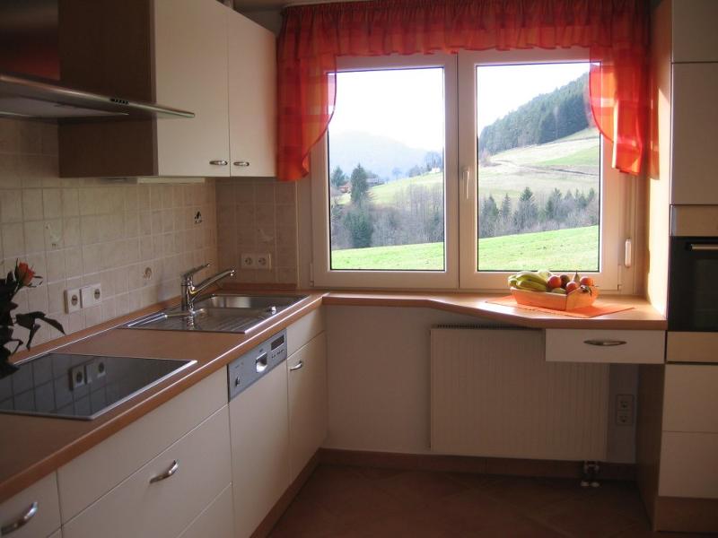 Im Landhausstil liebevoll eingerichtete Erdgeschoss-Wohnung, mit Schlafzimmer, mit Doppelbett, mit Zugang zur Terrasse, großes Wohnzimmer mit Sitzgruppe und separatem, hochwertigem Schrank-Doppelbett (Fa. Nehl), Kachelofen, schöne Terrasse nach Süden mit herrlichem Blick ins Tal. Sehr gut eingerichtete Küche mit Geschirrspüler, Mikrowelle, Backofen, Wasserkocher, Kaffeemaschine, Toaster . Esszimmer mit Eckbankgruppe, Bad mit begehbarer Dusche und Badewanne und WC. Kabelanschluss, Farb-TV, DVD-Player, Stereoanlage. Bett -und Tischwäsche, Handtücher, Badetücher, Haarfön sind vorhanden. Kinderbett möglich.