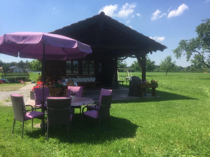 Wanderurlaub oder Radlurlaub. Wir sind ein kinderfreundliches Haus. Ein Gartenhäuschen mit großen überdachten Freisitz zum gemütlichen Grillen oder Unterhalten.