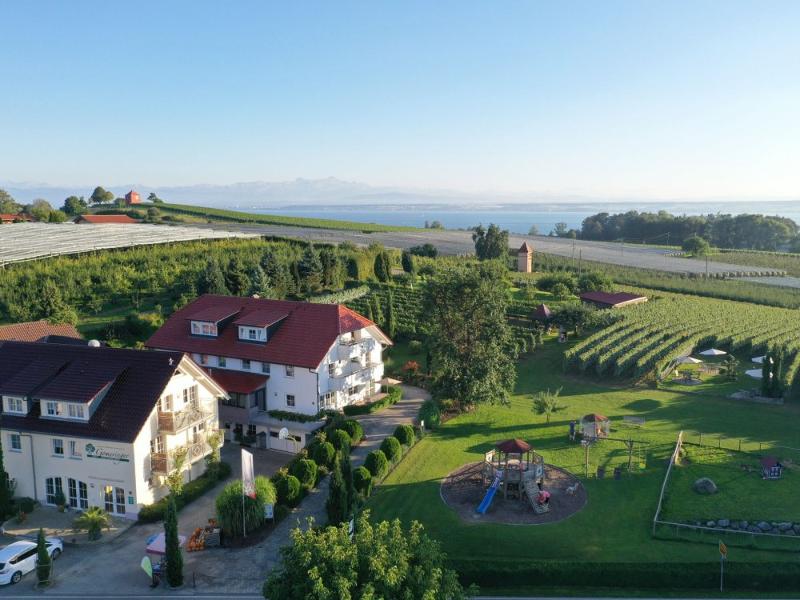 Unser Ferienhof liegt inmitten eines ein Hektar großen Obst- und Weingartens, nur einen Kilometer vom Bodensee entfernt. Abseits vom Touristenrummel und Durchgangsverkehr, dennoch sehr zentral gelegen, erreichen Sie schnell die schönsten Ausflugsziele.