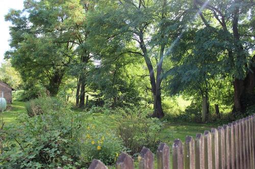 Im angrenzenden Zimmer können bis zu 4 Personen übernachten. In der Küchenzeile befindet sich ein extra Wasserhahn für gefiltertes Trinkwasser sowie ein Sodastream, um schweres Kistenschleppen zu vermeiden und der Umwelt etwas Gutes zu tun. Über eine Wendeltreppe gelangen Sie in den Innenhof und den Garten mit Feuerstelle und Bachlauf.