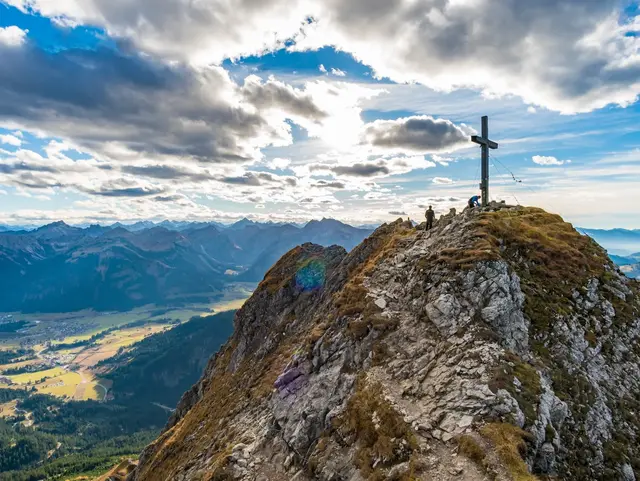 Markante Gipfel der Tannheimer Berge: Aussichtspunkte wie das Neunerköpfle oder Berge wie die Rote Flüh bieten beeindruckende Ausblicke über das Hochtal.