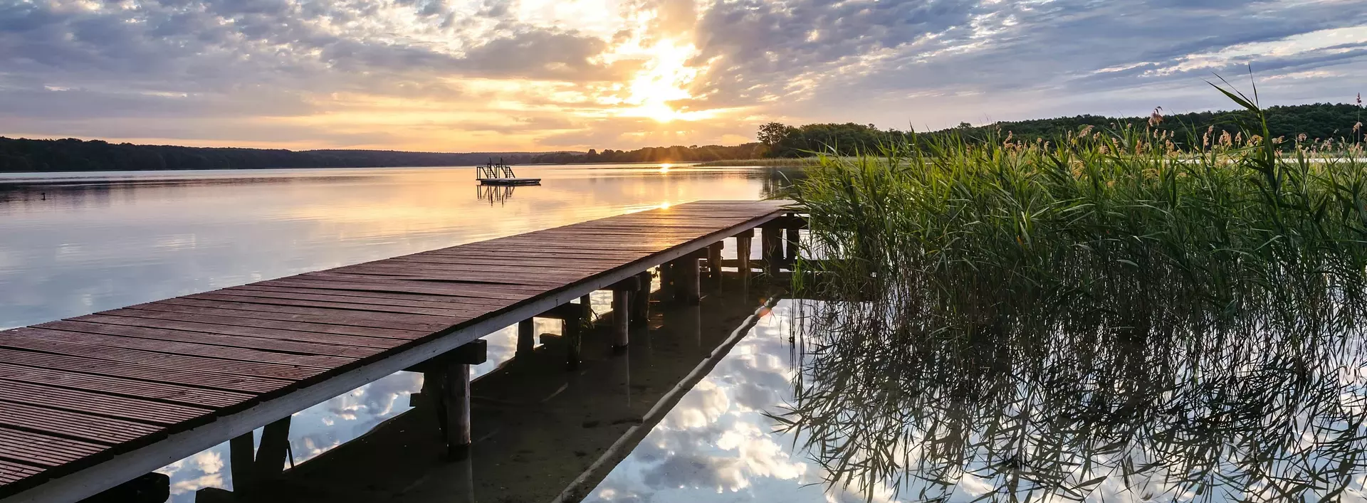 Verbringen Sie Ihren Urlaub an der Mecklenburgischen Seenplatte – Erholung für die ganze Familie inmitten unzähliger Seen, tiefgrüner Wälder, idyllischer Badestellen, Bootsstegen, Fischreusen und auf Pfählen errichteter Bootshäuser. Die Mecklenburgische Seenplatte erstreckt sich als größte zusammenhängende Seenplatte Europas vom Süden Mecklenburg-Vorpommerns bis nach Brandenburg. Ein Netzwerk aus kleinen und großen Gewässern, oft durch Kanäle verbunden, reiht sich wie eine glitzernde Perlenkette aneinander.