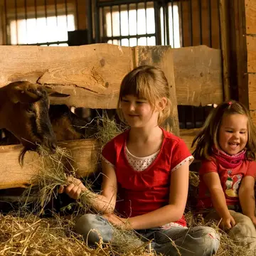 Bauernhofurlaub in BayernErlebe ganz besondere Ferien auf einem Bauernhof in Bayern. Schweine, Ziegen, Hühner & Co. versüßen großen & kleinen Gästen den Aufenthalt und freuen sich immer über Streicheleinheiten. Lerne die aktive Landwirtschaft kennen, sammel deine Frühstückseier selbst ein und genieße frisch gemolkene Milch.